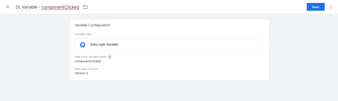 You need to configure a User Defined Data Layer Variable for every parameter you have included in your templated dataLayer. For example to pick up our 'componentClicked' and 'itemDetails' values, we would set up: