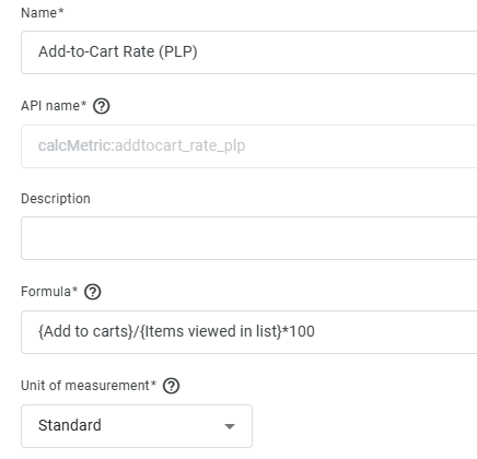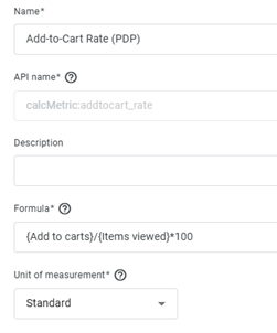 To build this Calculated Metric, you’ll be using, in plain English, “add to carts, divided by product views”. As a user is generally only viewing products on PDPs if you do it this way, it’s really giving you the PDP add-to-cart rate (because you are using the GA4 event called “view_item”). The formula for this would look like: