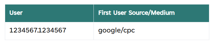 1. The user is attributed to 'google/cpc' as their First User Source/Medium because this is how they arrived at the site during Session 1, their first visit.