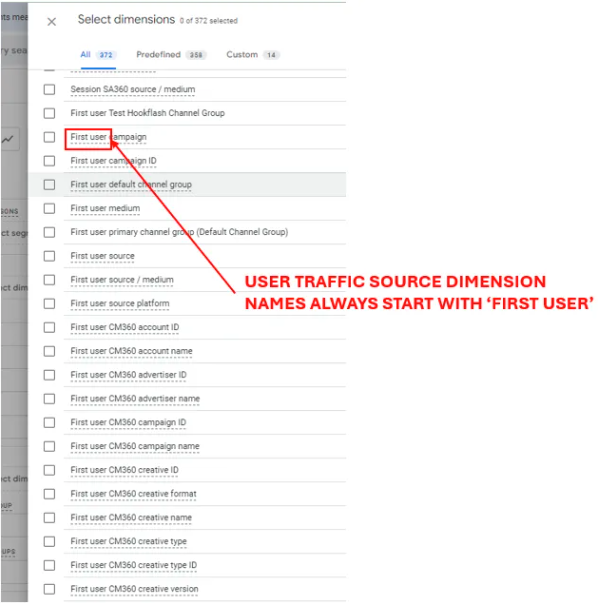 Different Types of Traffic Source Dimensions in GA4 UI
