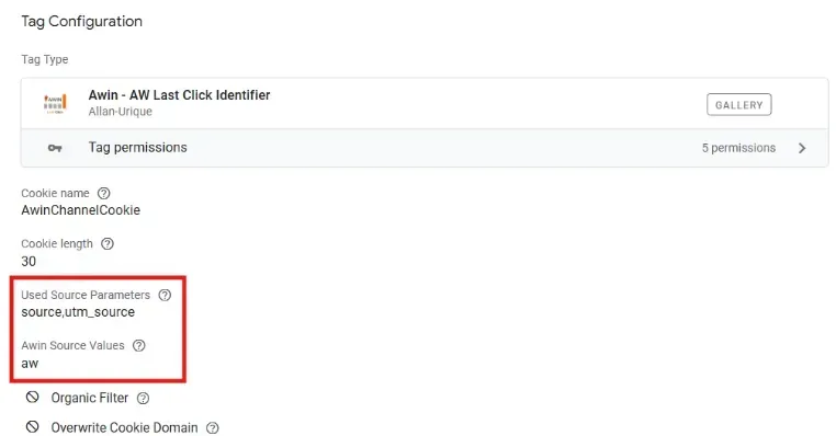 You might be wondering “If source is the value that sets the cookie to ‘aw’, why are we checking for utm_source anyway? Why not only check for source?”. Well, if you did that, you would solve the above problem, however you would also over attribute traffic to AWIN.