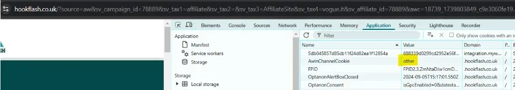 This is important, because if I go on to convert with this cookie set to “aw”, then AWIN will take credit for the conversion. If this cookie isn’t set correctly, you could be underpaying or overpaying your affiliates.