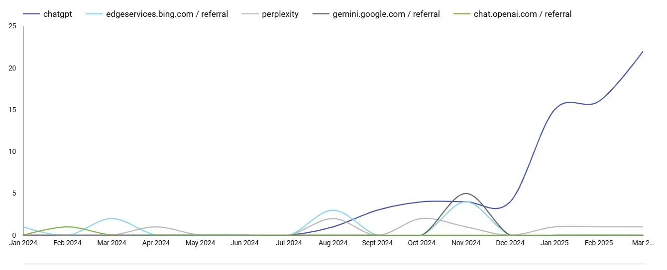 *By increasingly more – the numbers are still pretty small. According to Search Engine Land , Google’s market share is 373x greater than LLMs like Chat GPT. For our clients, we are seeing very small numbers of site visitors coming through engines such as Chat GPT. You can’t deny that it’s definitely on the rise, though.
